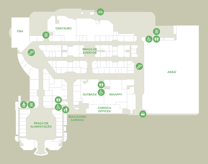 Disponibilizamos sanitários exclusivos e adaptados para pessoas com necessidades especiais. Temos no 1º piso próximo ao Outback e na Praça de Alimentação, no 2º piso, próximo a Área Gourmet.